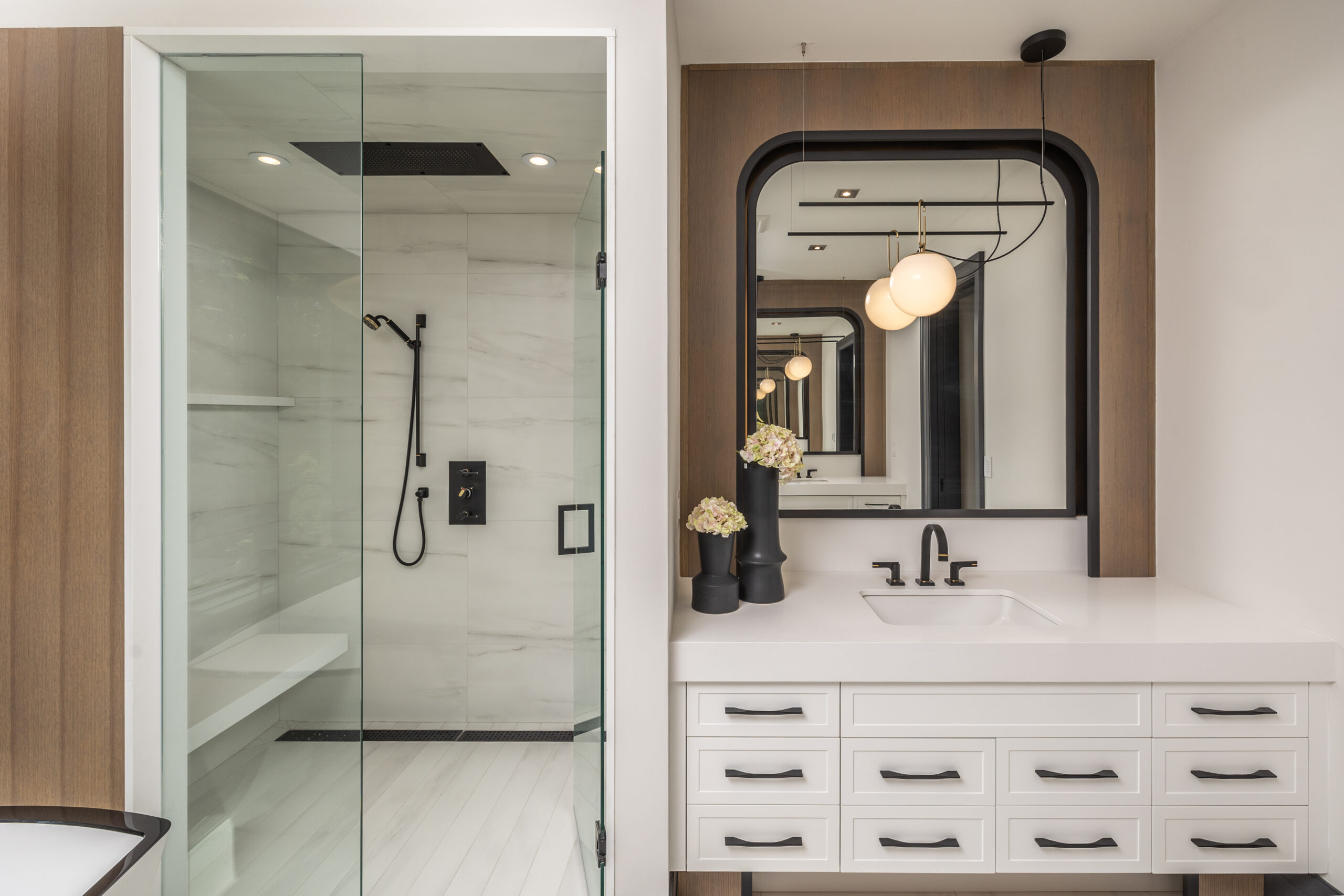 We designed the garage to discreetly incorporate the car elevator, making it both functional and visually appealing. Inside, the kitchen was outfitted with premium cabinetry, integrated lighting, and high-end appliances for a clean, sophisticated look. The bedroom was designed as a serene retreat, with a modern layout, warm finishes, and clever storage solutions. Throughout the project, we used a minimalist aesthetic combined with premium materials to create a sense of luxury without excess.